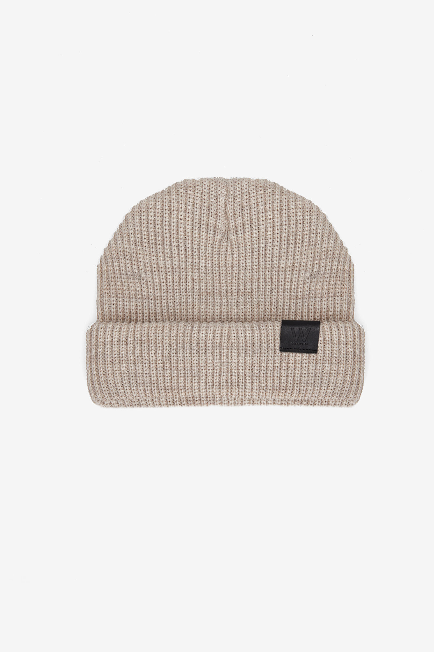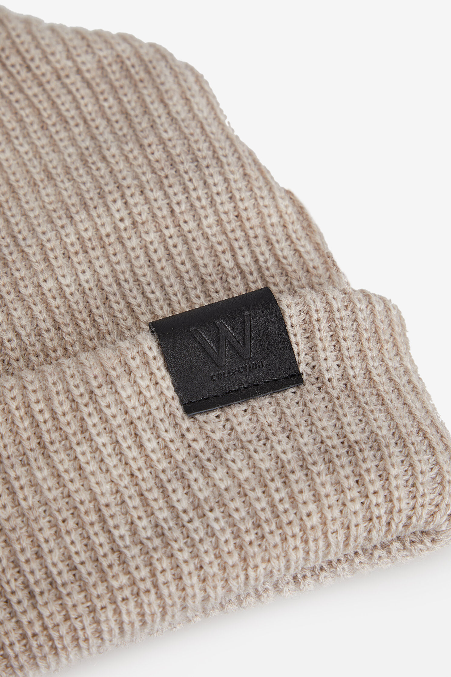 Ekru renkli W Collection bere, yün karışımlı kumaşa sahip olan örme deseni ve logo detaylı katlanmış formu ile dikkat çekiyor.
