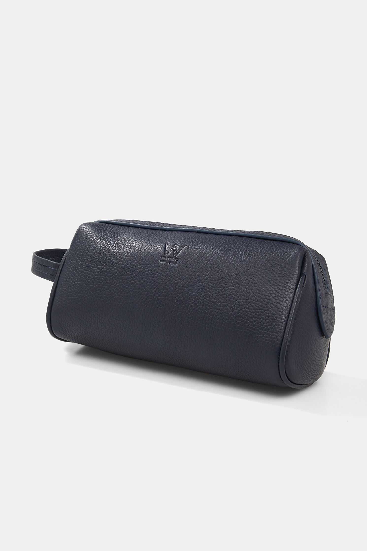 W Collection el çantası, lacivert rengi ve fermuarlı iç cebi ile öne çıkıyor. Bu logolu model, tutma sapına sahiptir.