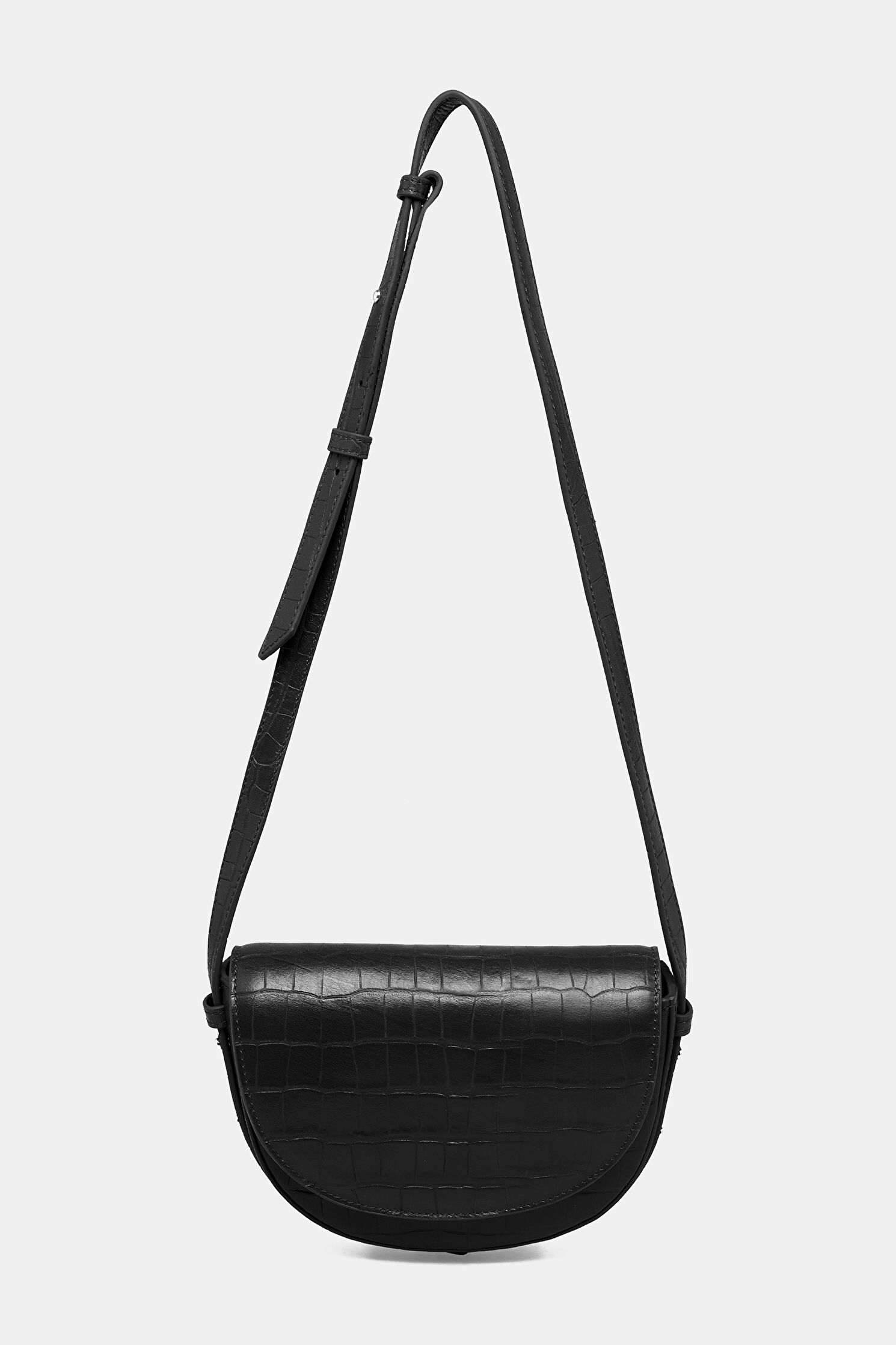 Dana derisi materyalden üretilen siyah renkli, desenli W Collection çanta, ayarlamalı omuz askısına ve manyetik kapamalı kapak detayına sahiptir.