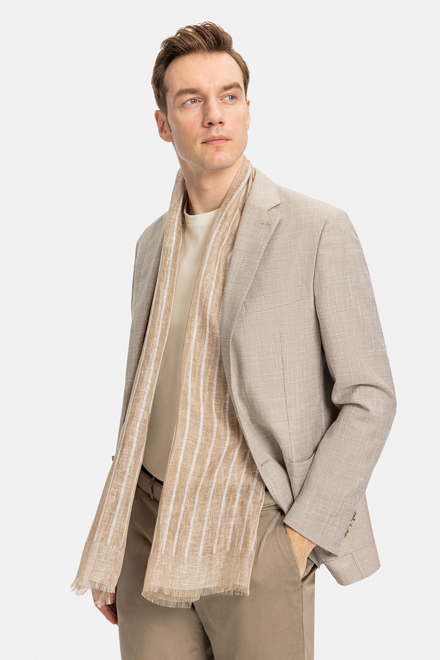 BEJ DÜĞMELİ YÜN CEKET