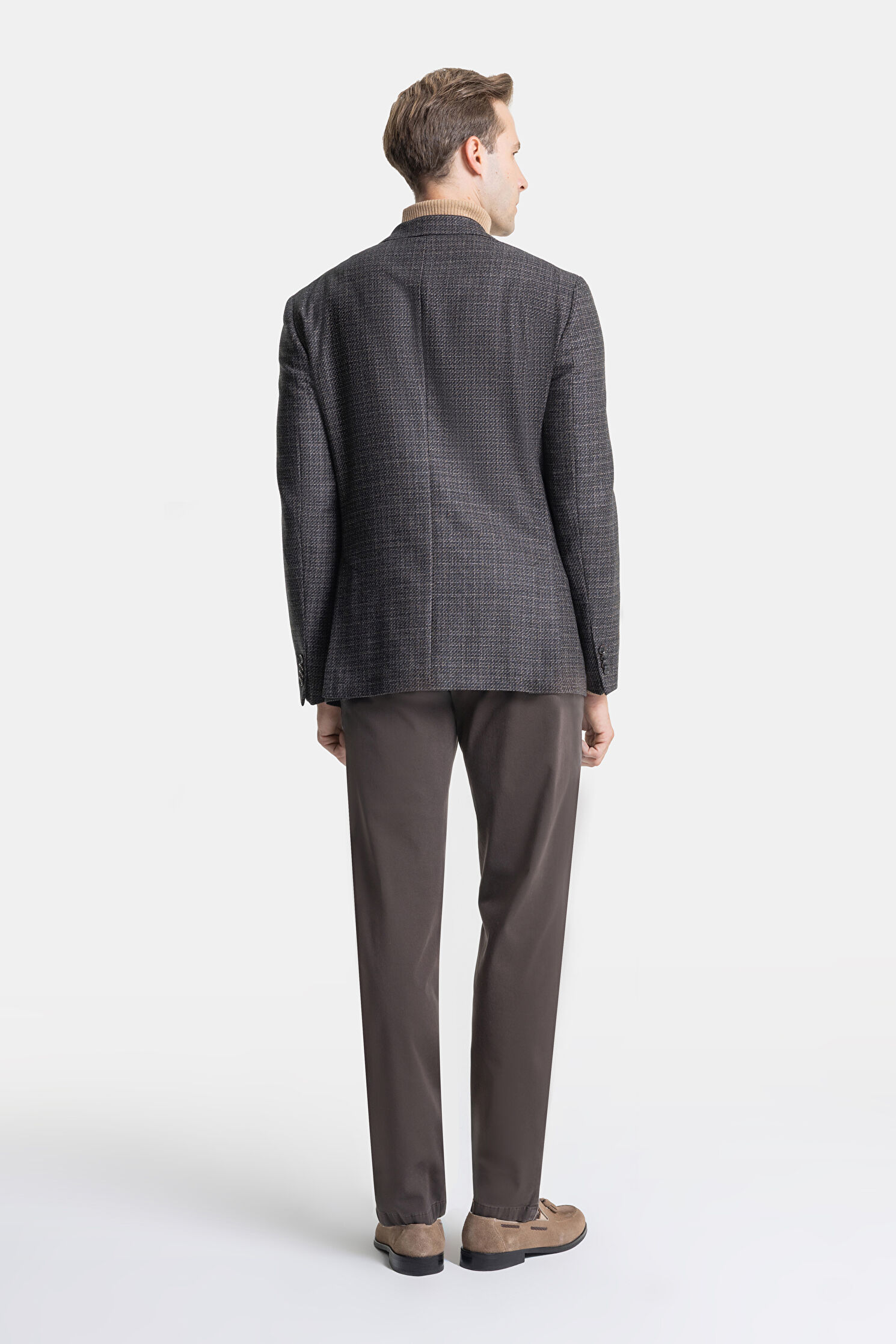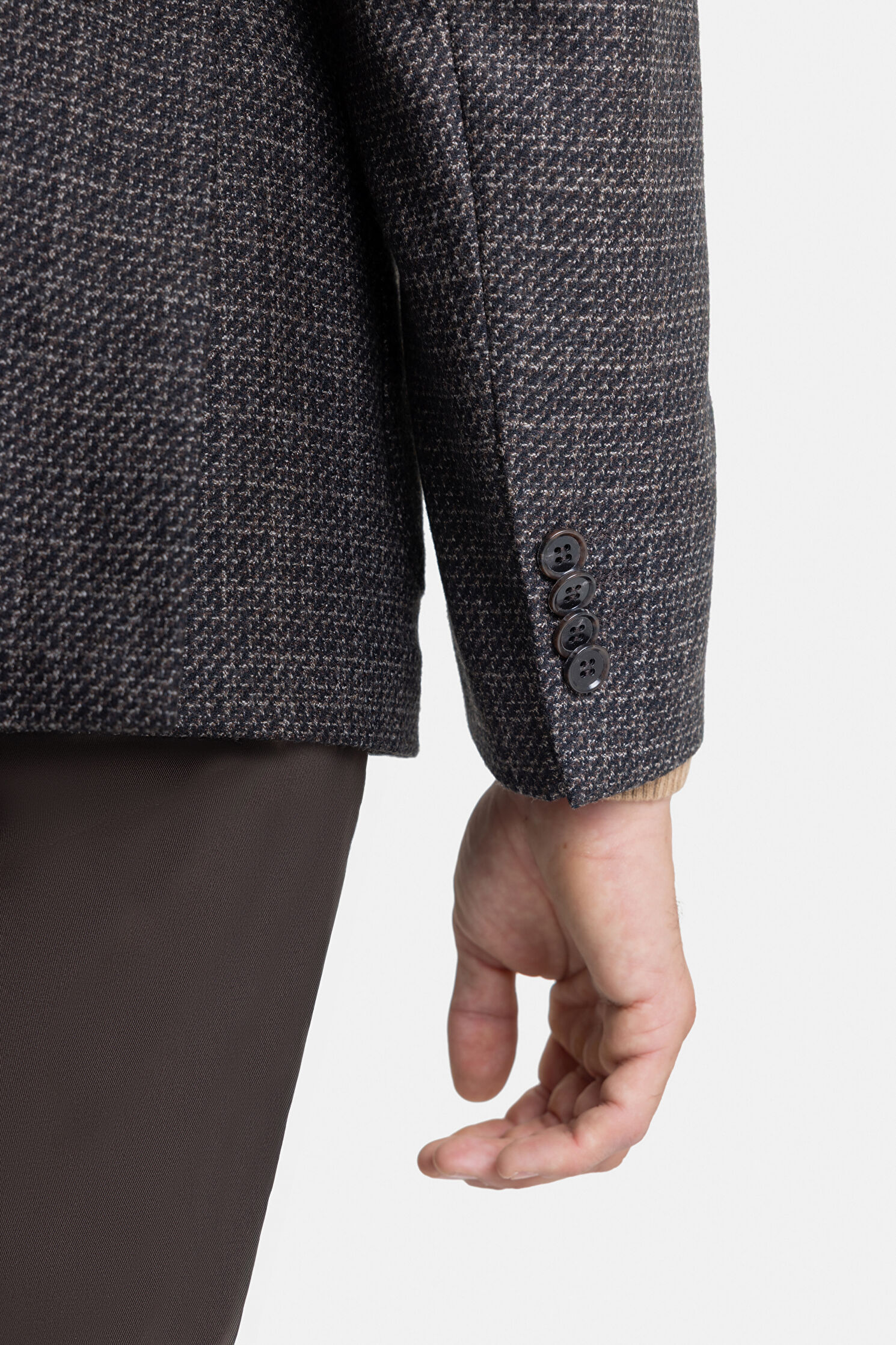 KAHVE DÜĞMELİ YÜN CEKET
