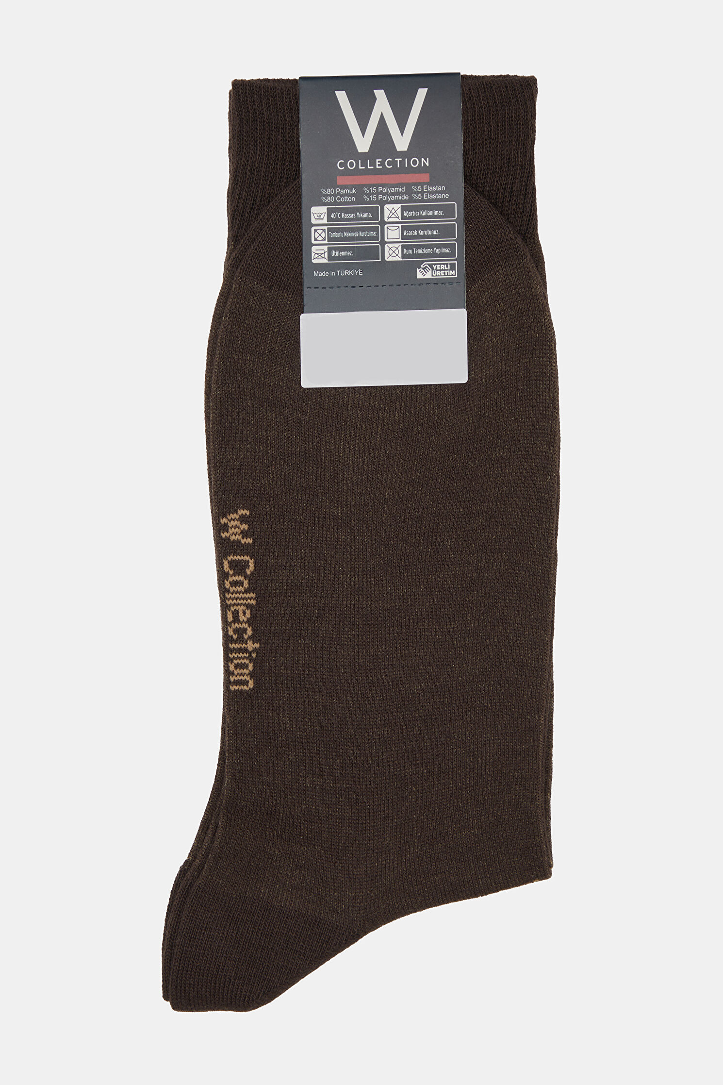 Pamuk karışımlı kumaştan üretilen kahve renkli W Collection çorap, bej renk baklava desenleri ile dikkat çekiyor.