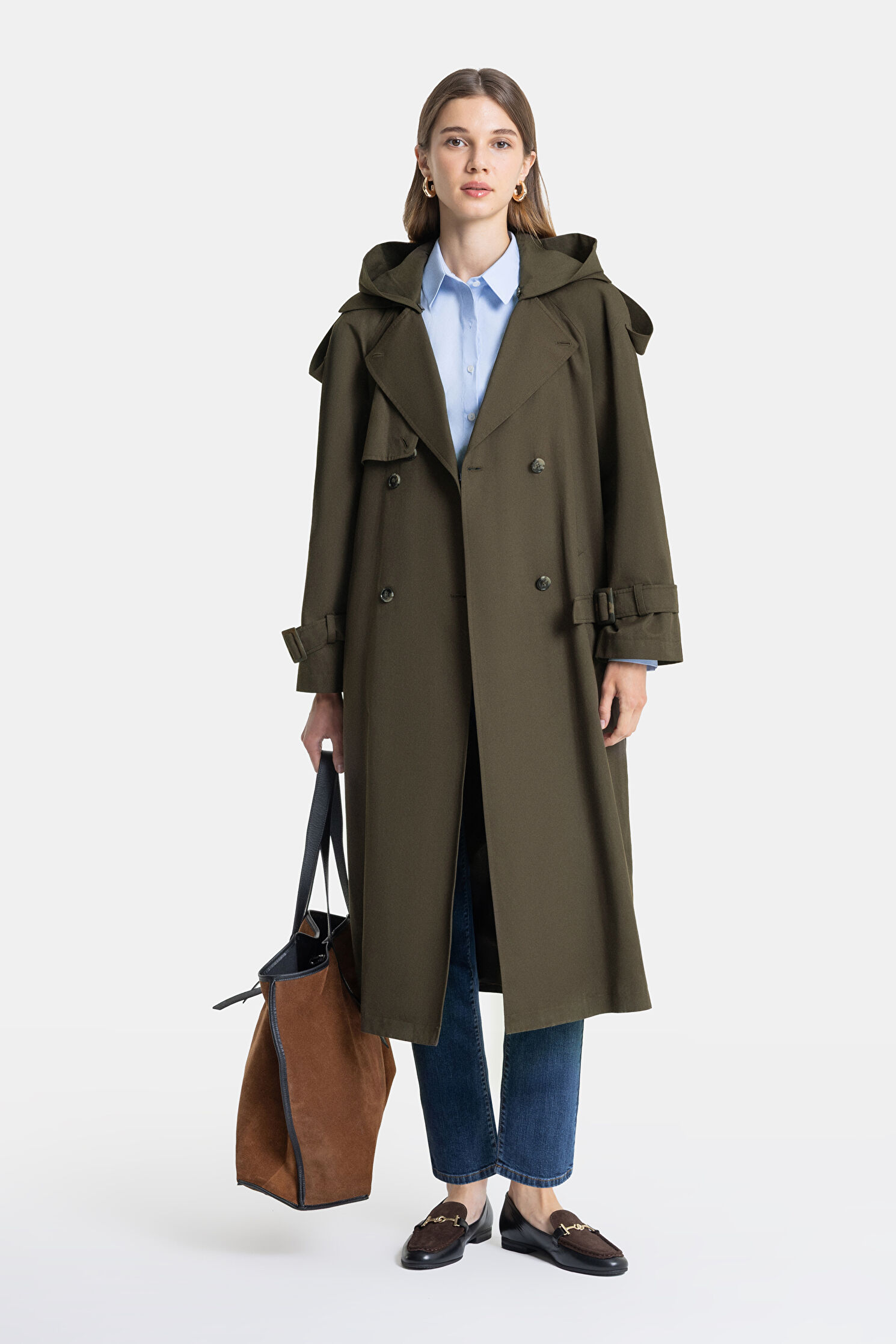 HAKİ KAPÜŞONLU TRENÇKOT