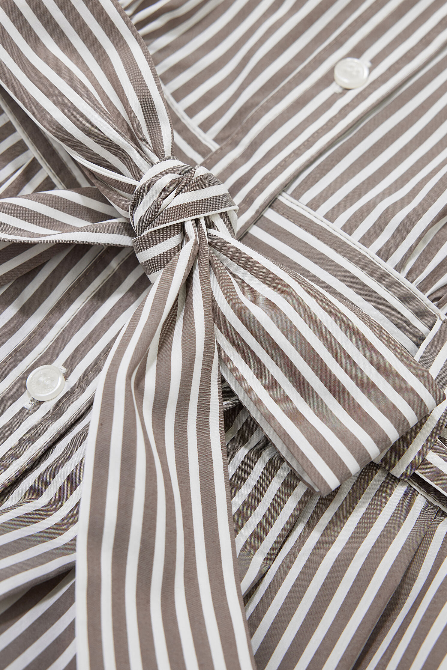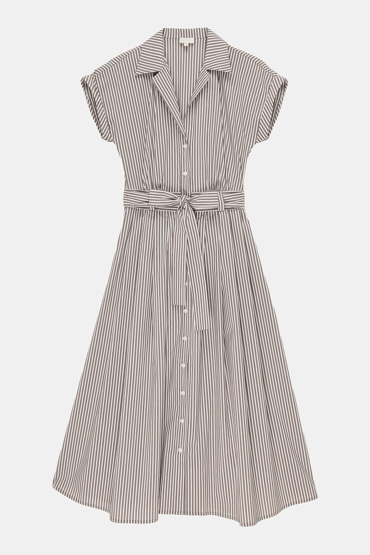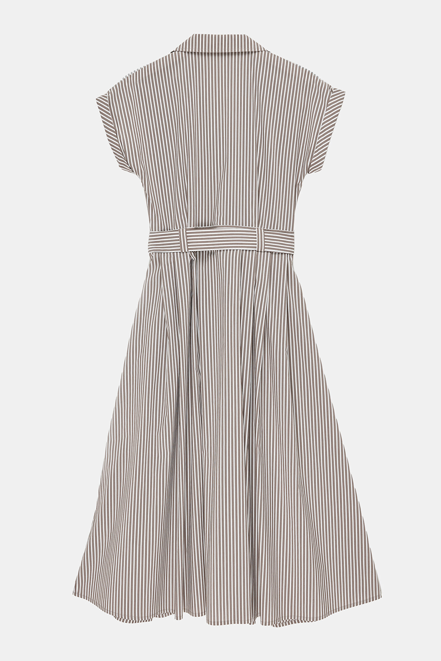 KAHVE EKRU ÇİZGİLİ ELBİSE