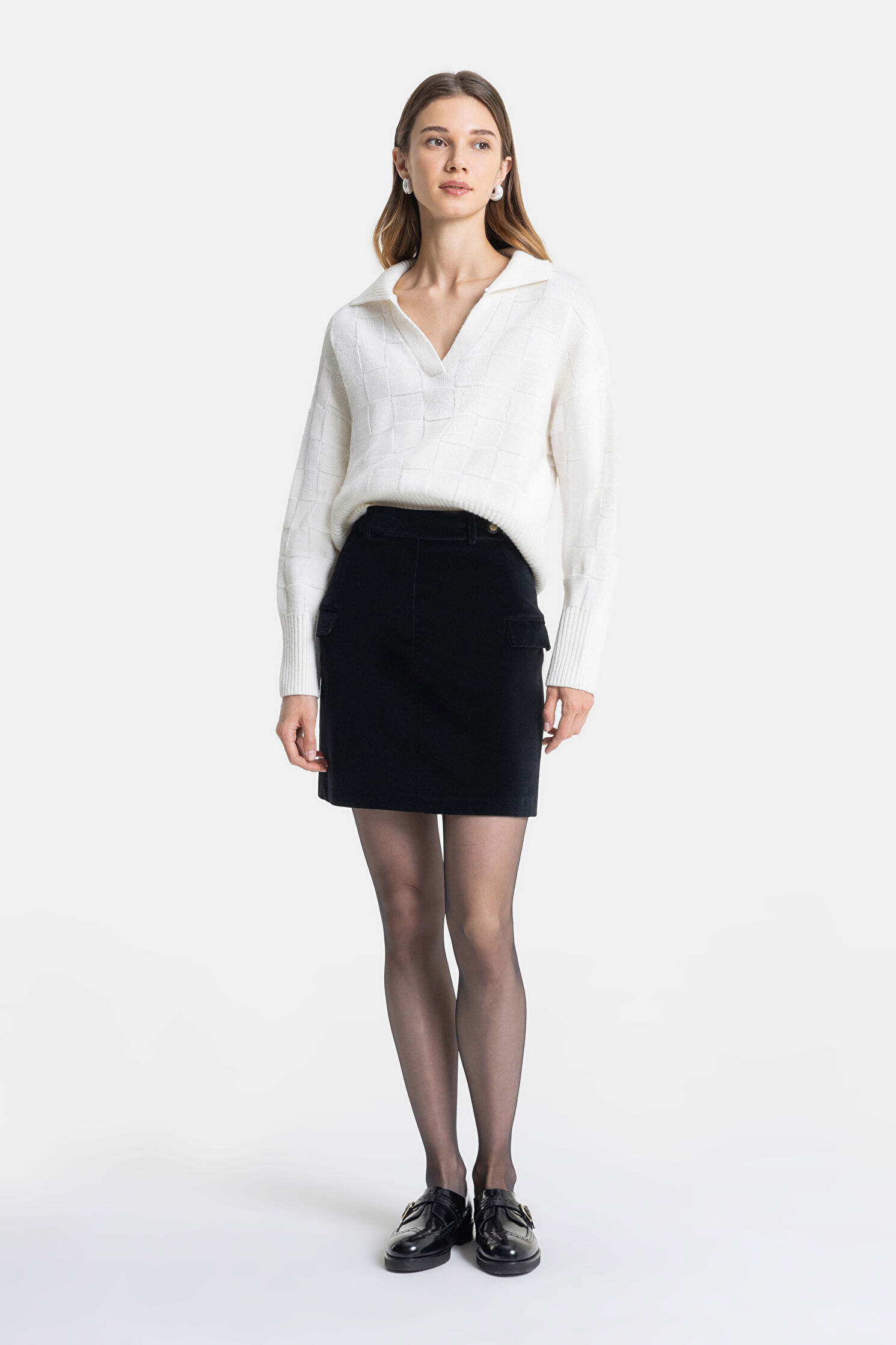 SİYAH KADİFE MİNİ ETEK