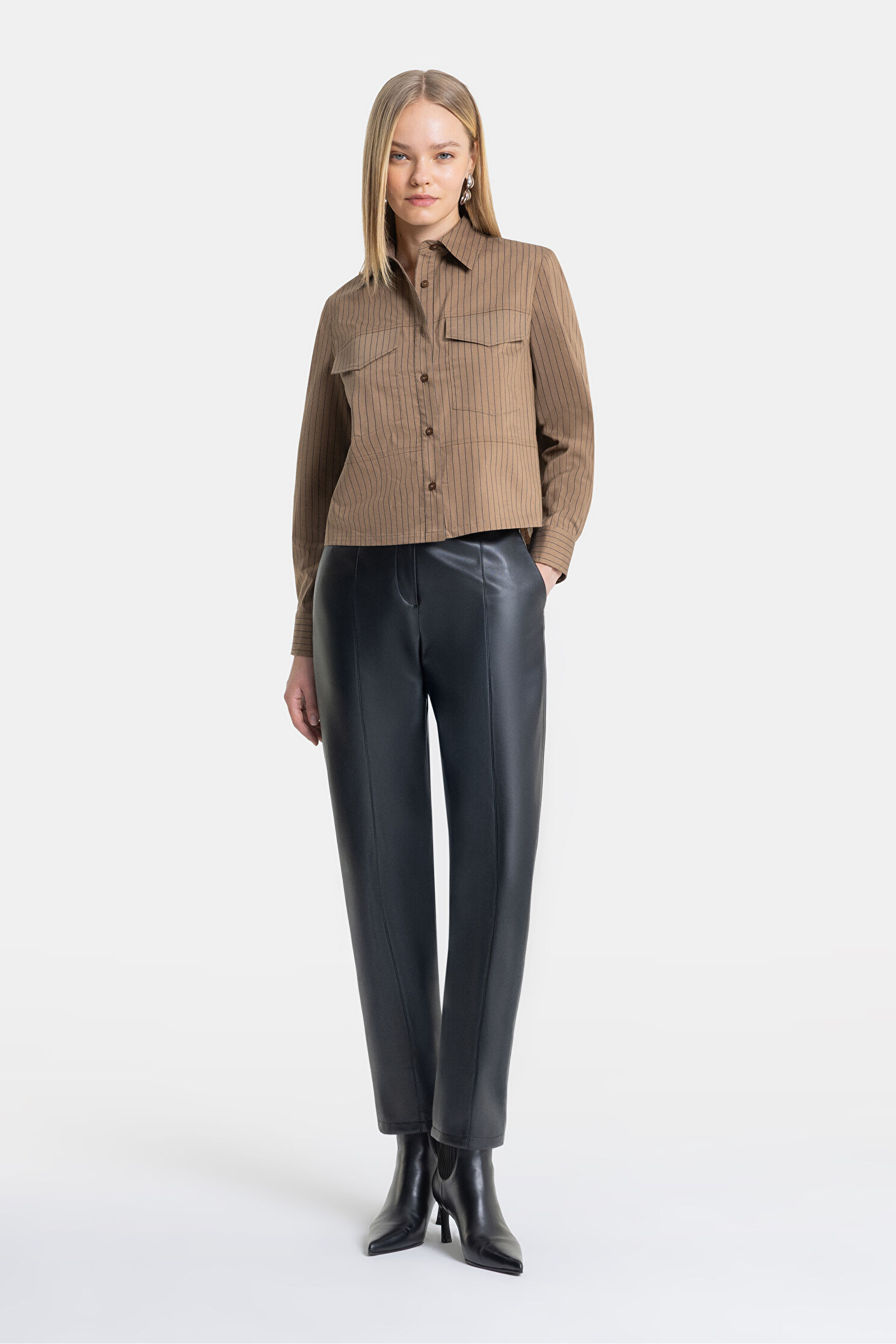 KAHVERENGİ ÇİZGİLİ BLUZ