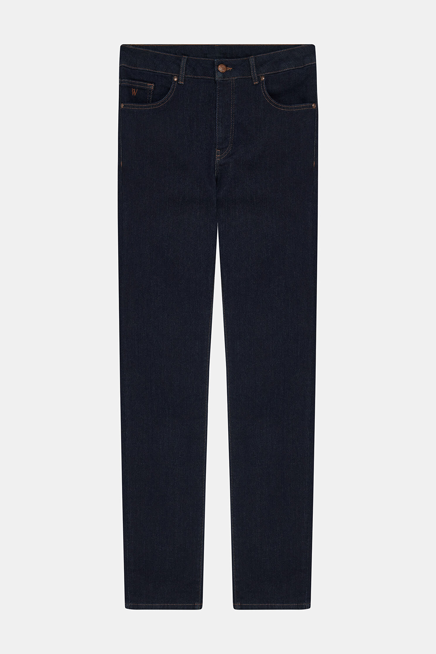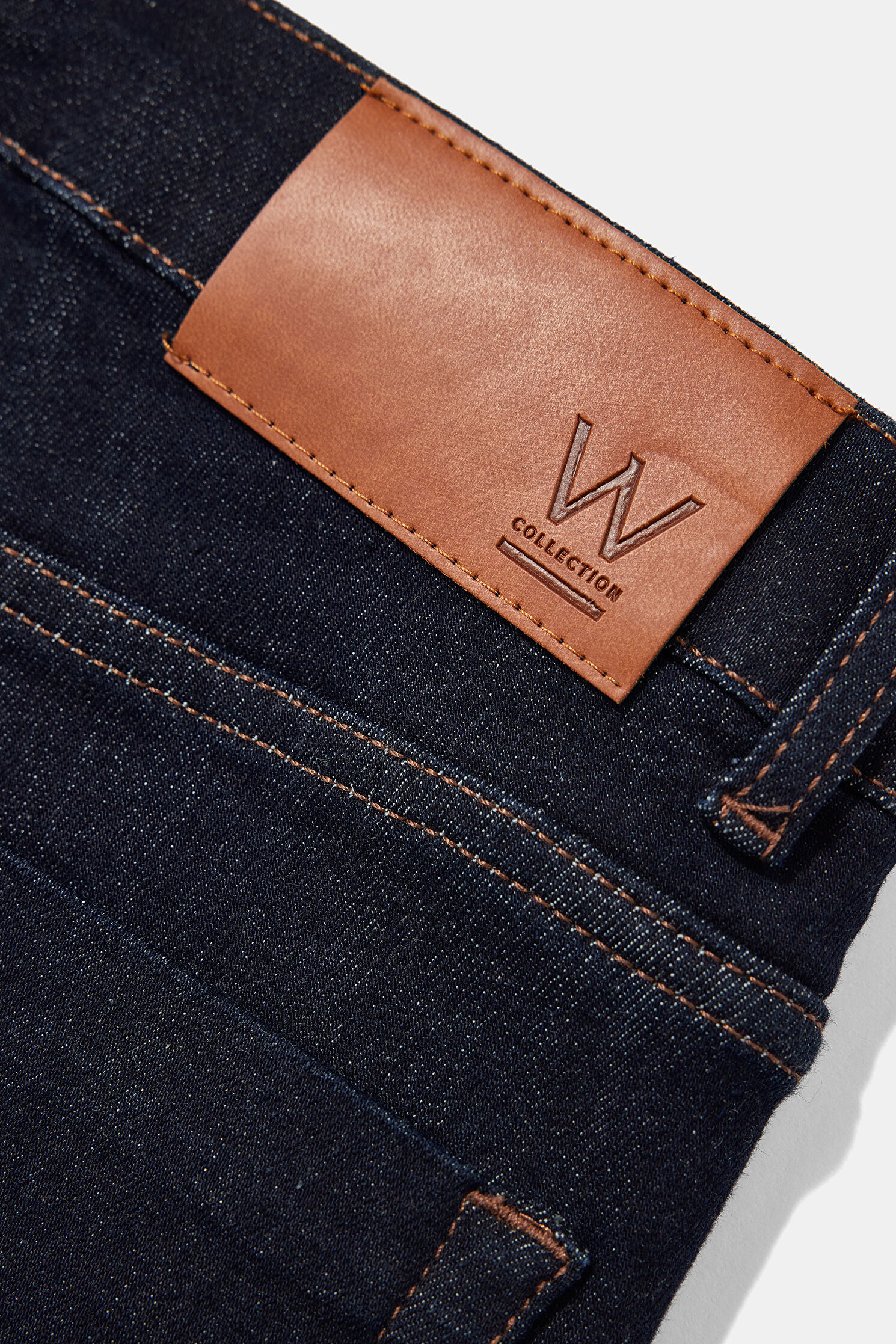 Pamuk karışımlı kumaştan üretilen koyu mavi renkli W Collection jean pantolon, yan ve arka ceplere sahiptir.