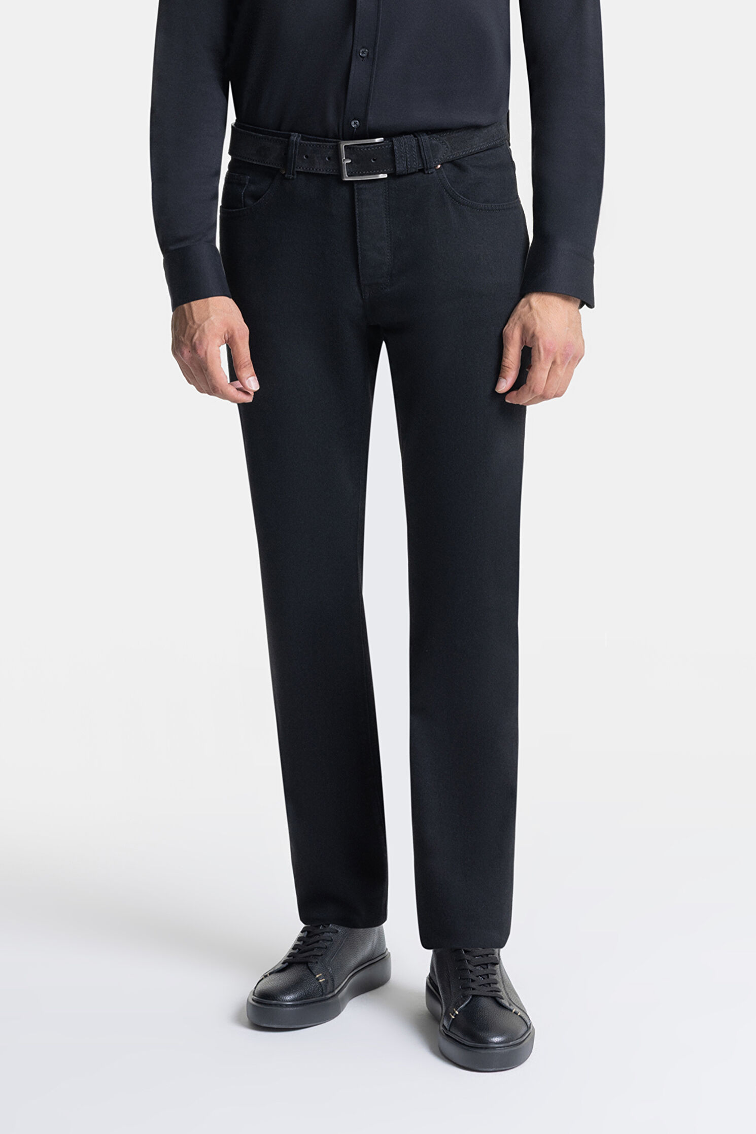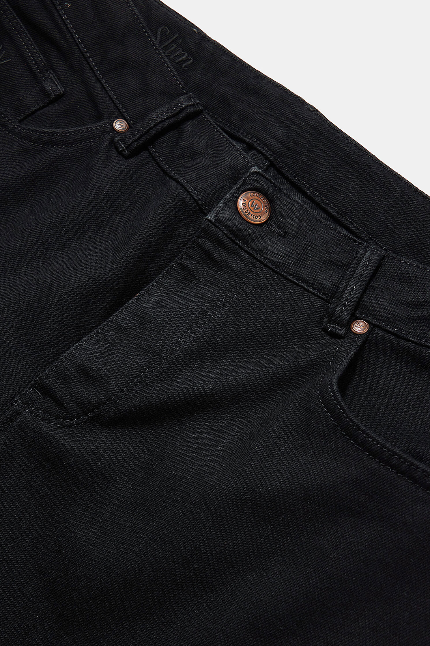 Yan/arka cep detaylı, siyah renkli W Collection jean pantolon, pamuk karışımlı kumaştan üretilmiştir.
