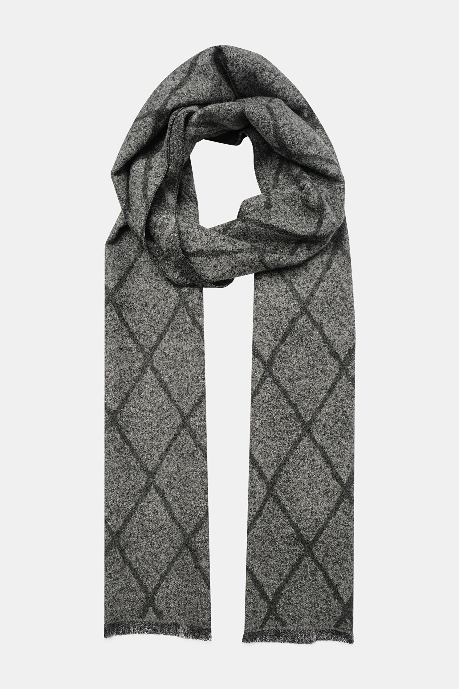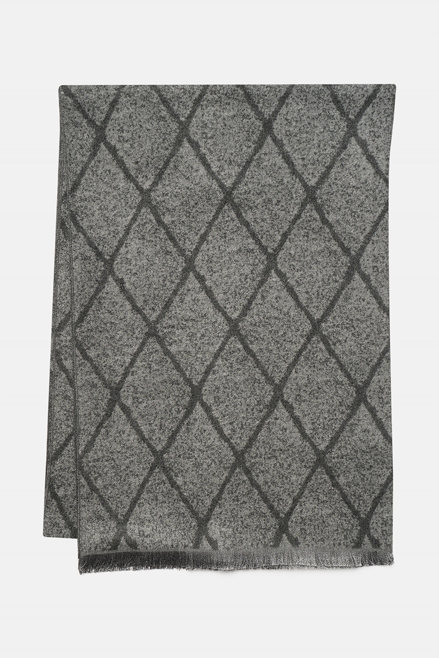 Antrasit, gri tonlu W Collection kaşkol, baklava desenleri ve püsküllü modeli ile dikkat çekiyor.