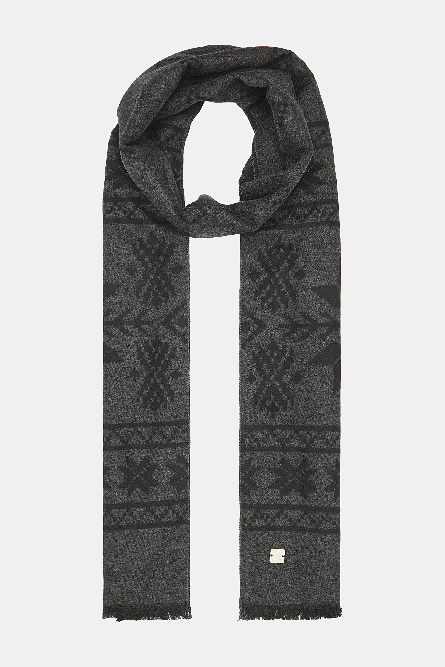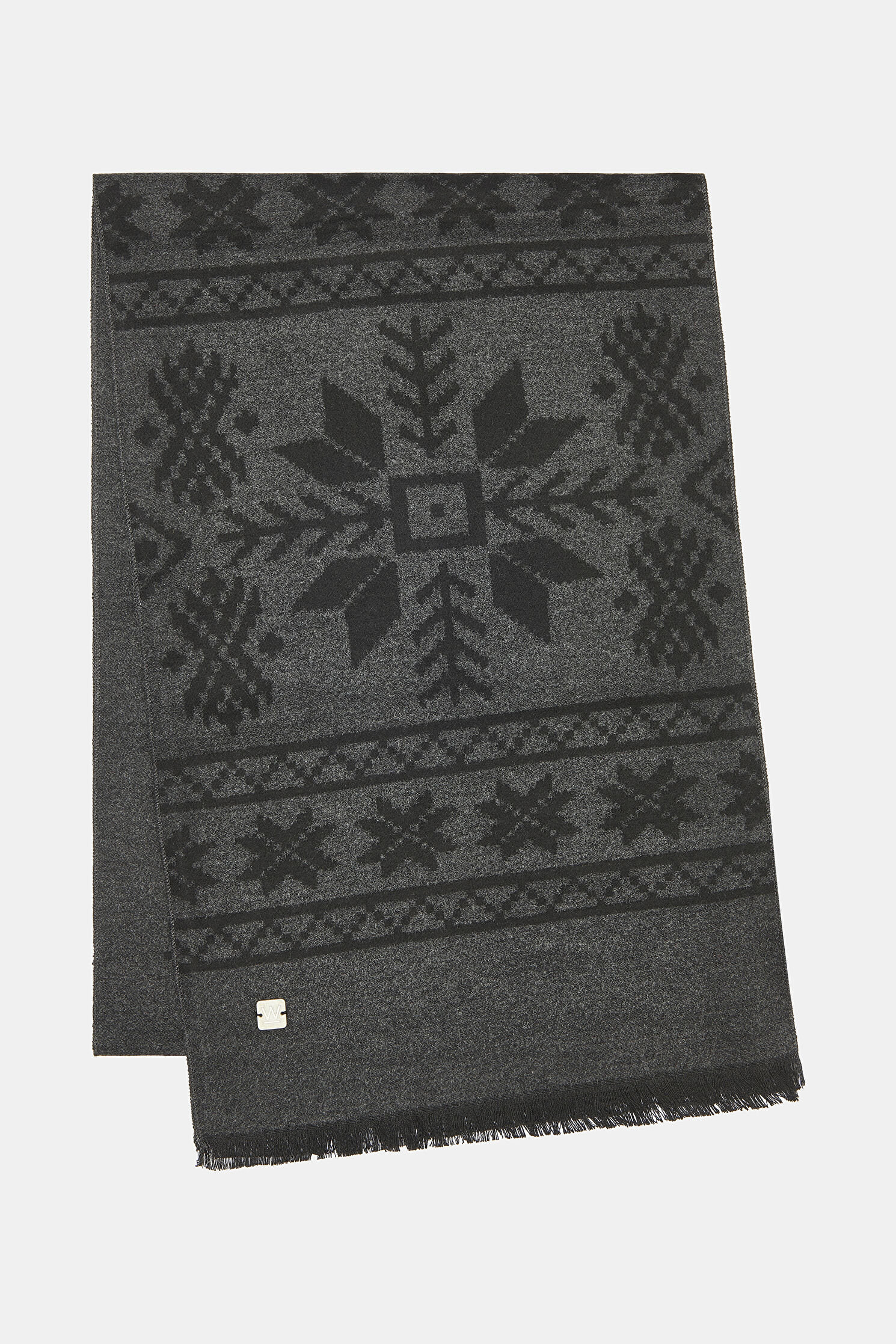 W Collection kaşkol, antrasit/siyah renk desenleri ile dikkat çekiyor.