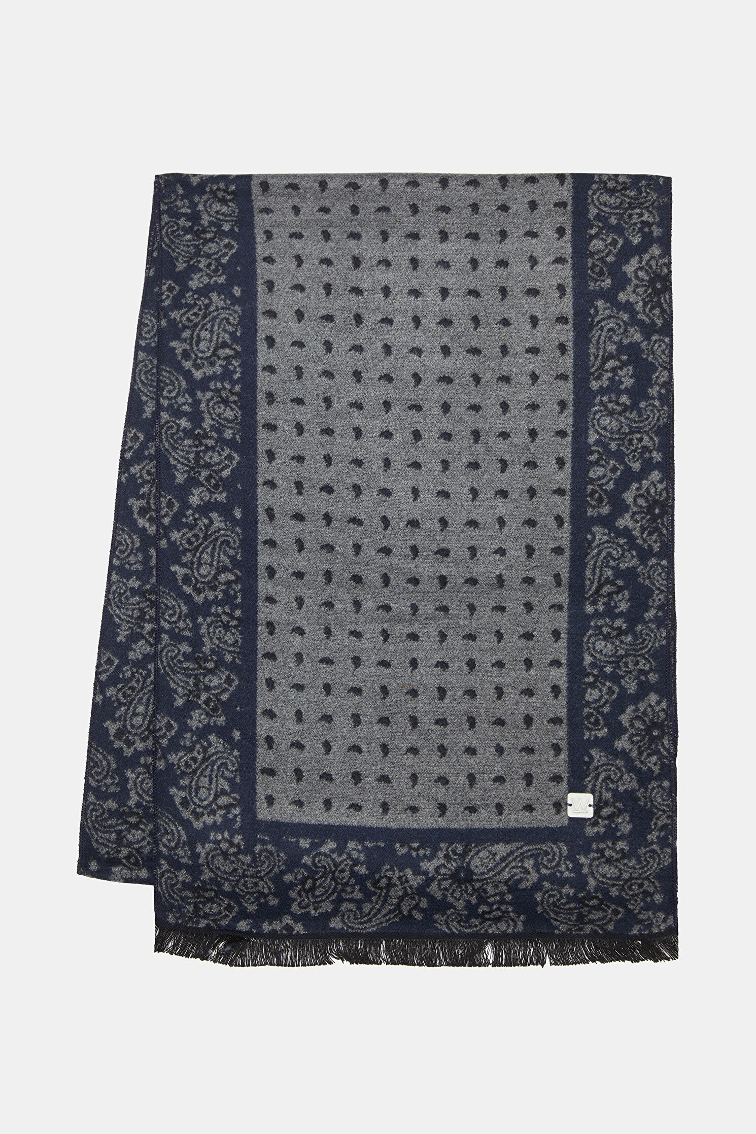 W Collection kaşkol, indigo ve gri renkli şal deseni ile dikkat çekiyor.