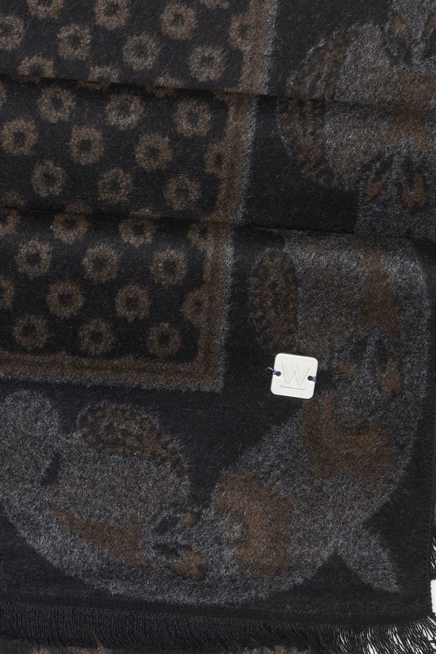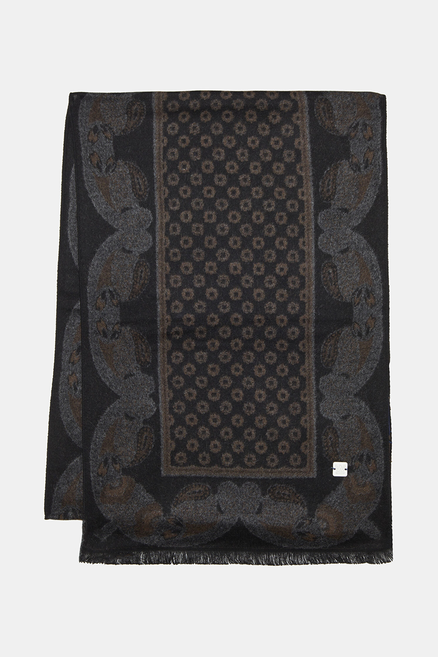 W Collection kaşkol, kahve ve siyah renkli şal deseni ile dikkat çekiyor.