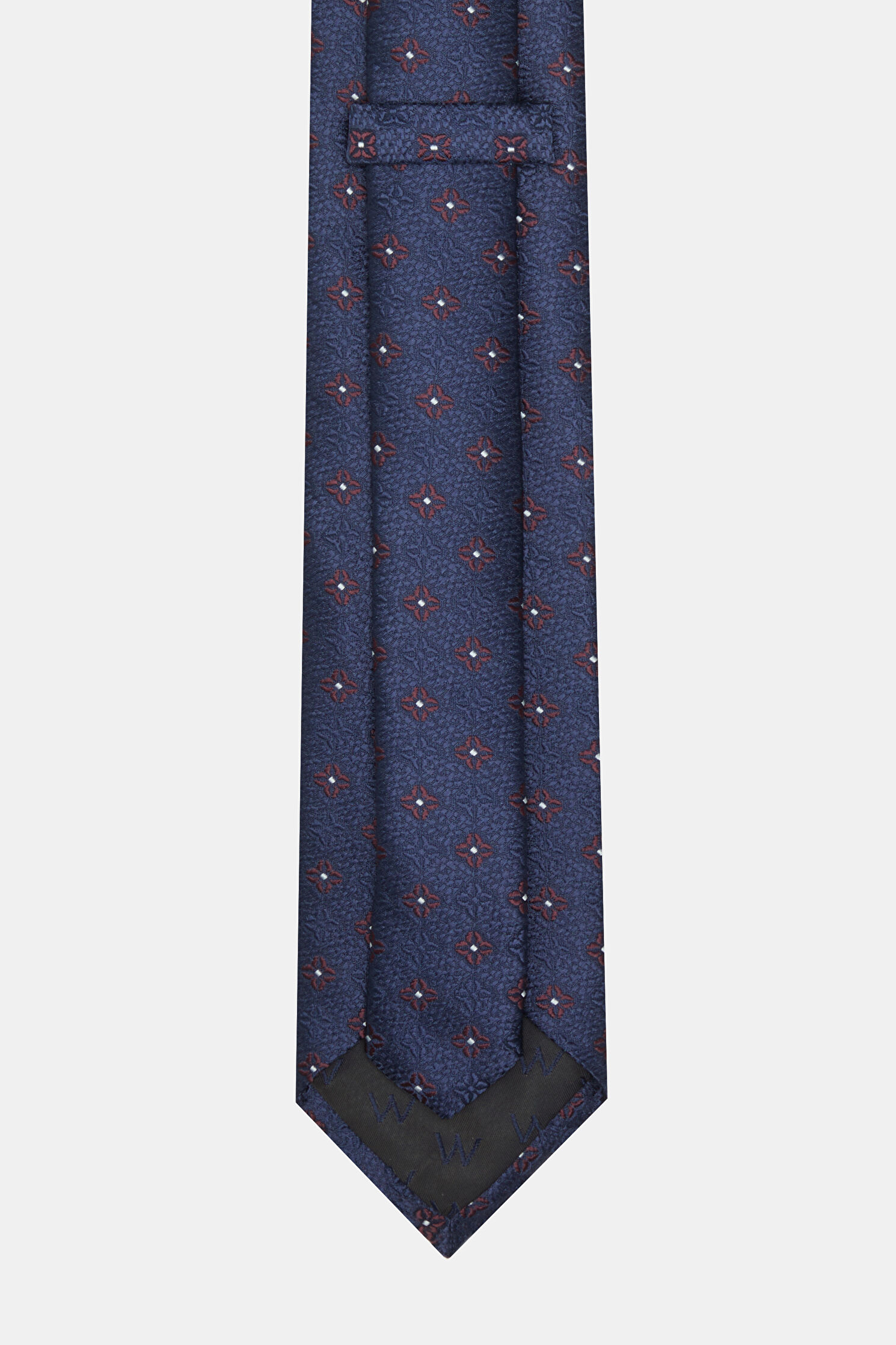 Lacivert ve bordo renkli W Collection kravat, çiçek deseni ile öne çıkıyor.