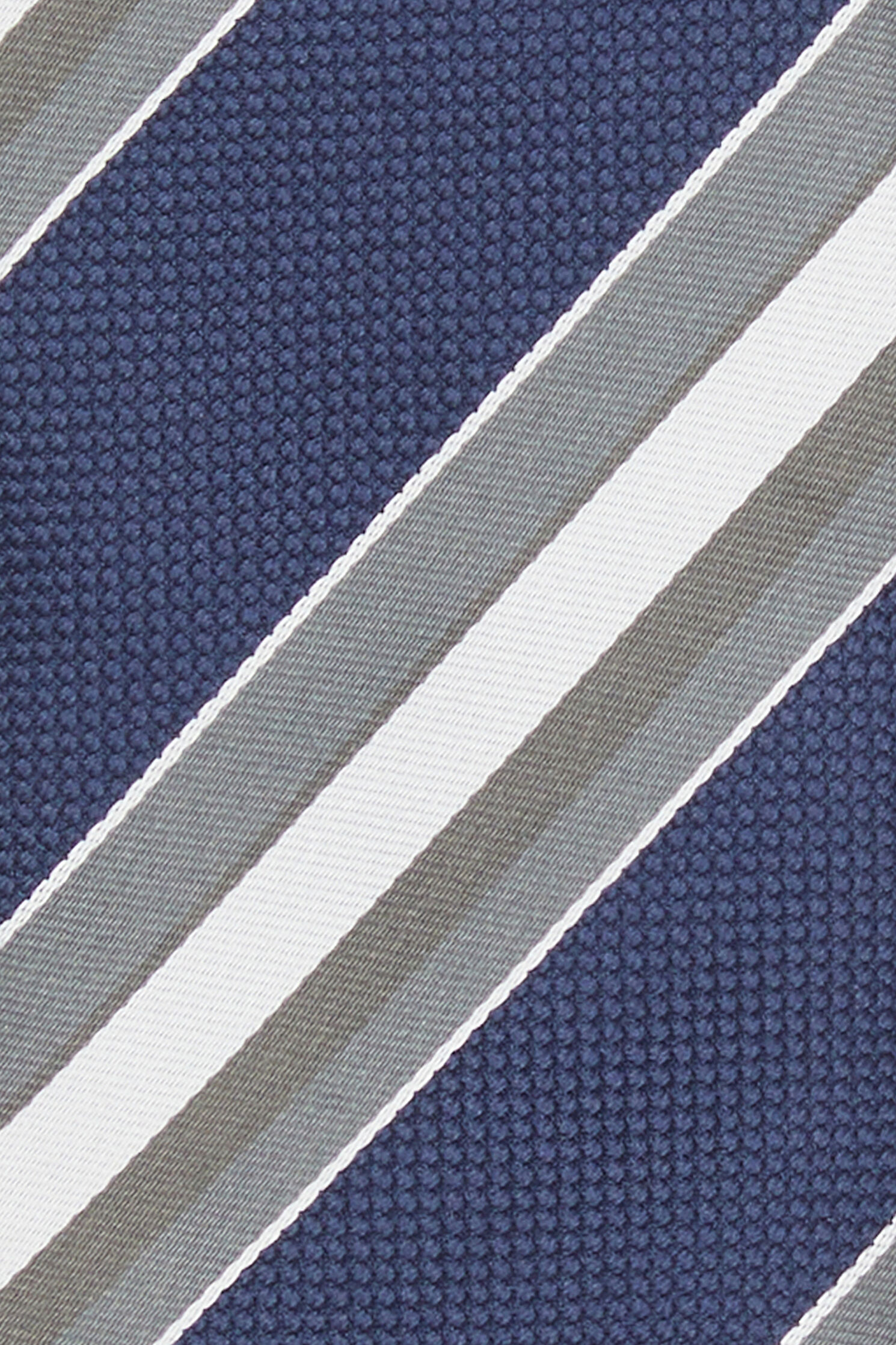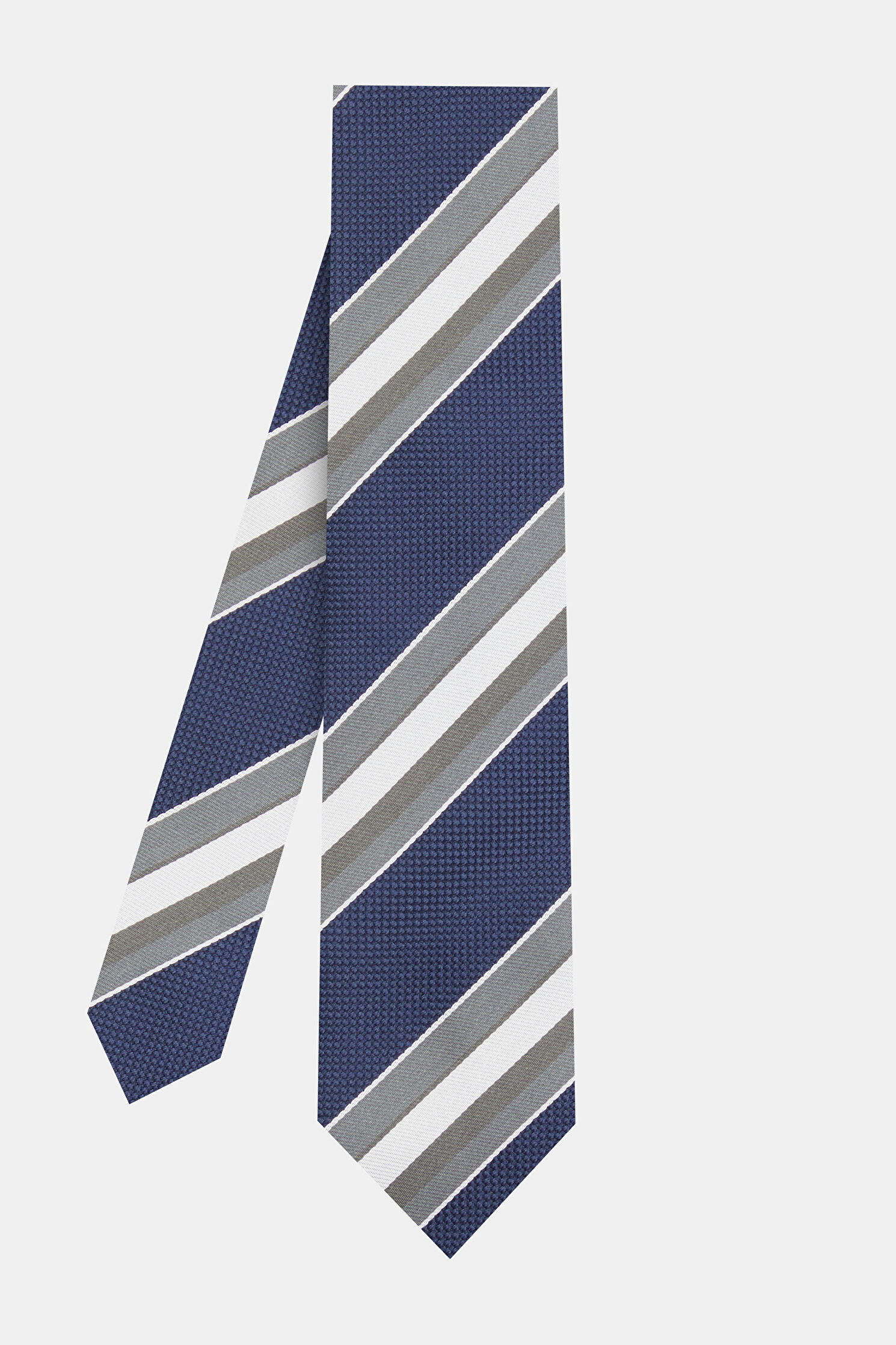 W Collection kravat, gri ve lacivert renkli çizgili deseni ile dikkat çekiyor.
