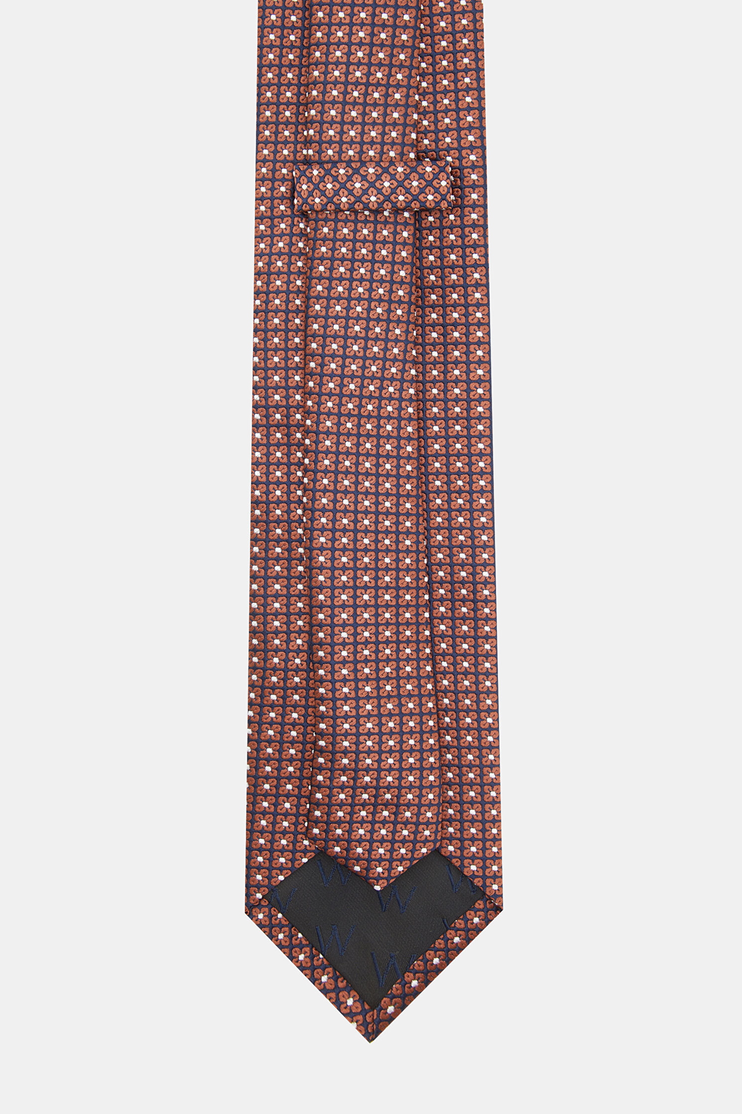 W Collection kravat, lacivert ve kahve renkli çiçek desenleri ile dikkat çekiyor.
