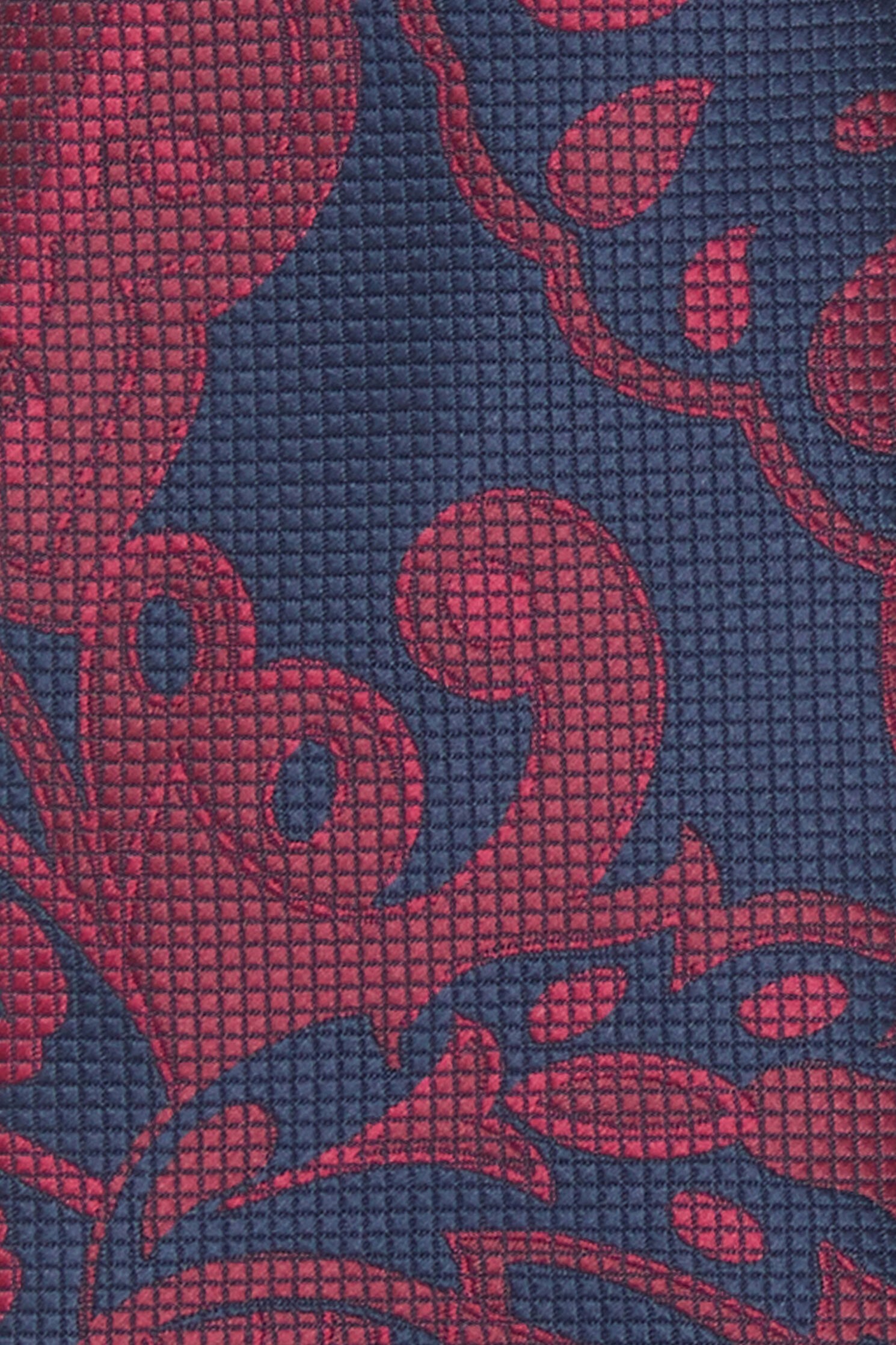 Bordo ve lacivert renkli W Collection kravat, şal deseni ile dikkat çekiyor.