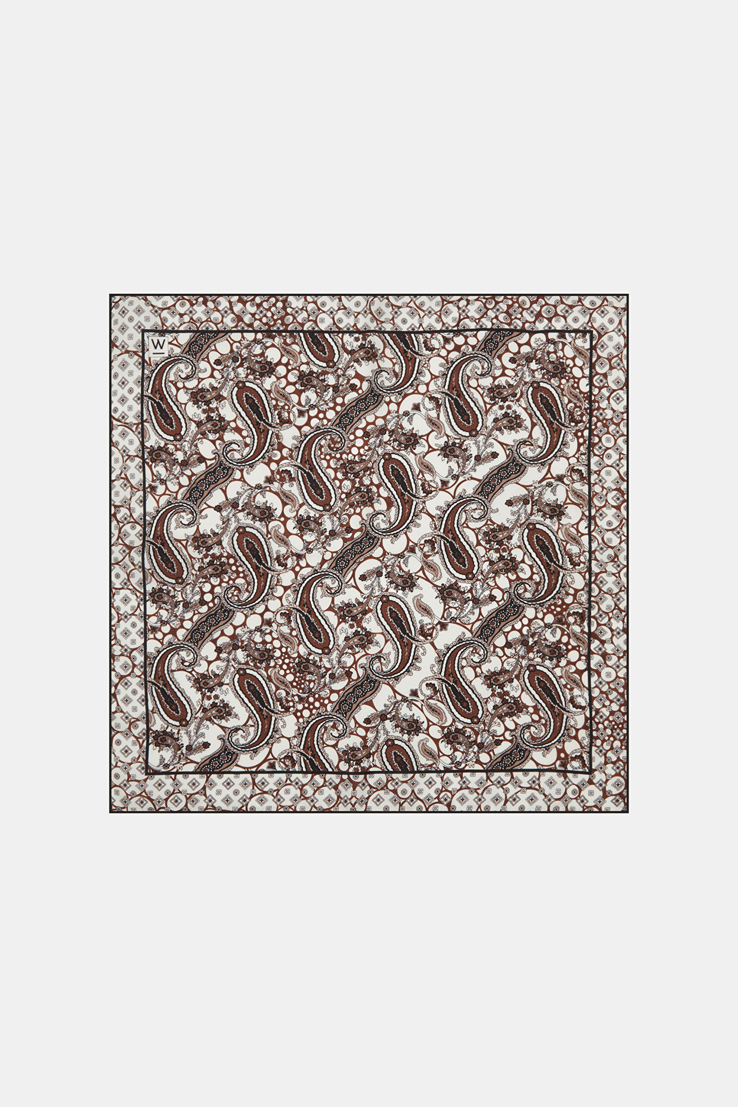 Siyah ve kahve renkli W Collection mendil, çiçek ve şal deseni ile dikkat çekiyor.