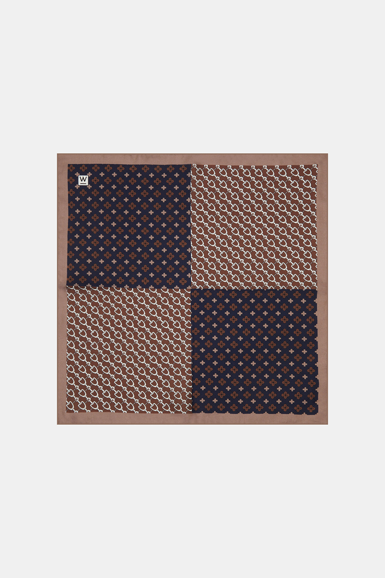 Bej renkli W Collection mendil, zincir ve çiçek deseni ile dikkat çekiyor.