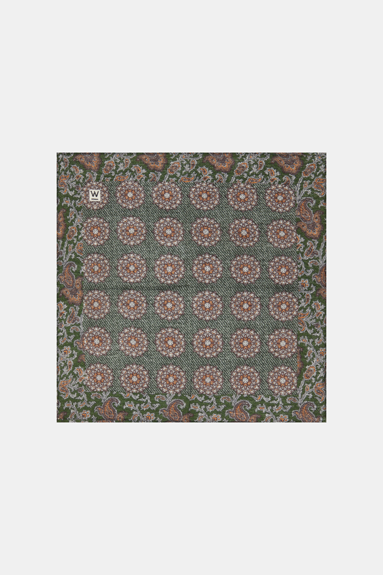 W Collection mendil, yeşil rengi ve daire deseni ile öne çıkıyor.