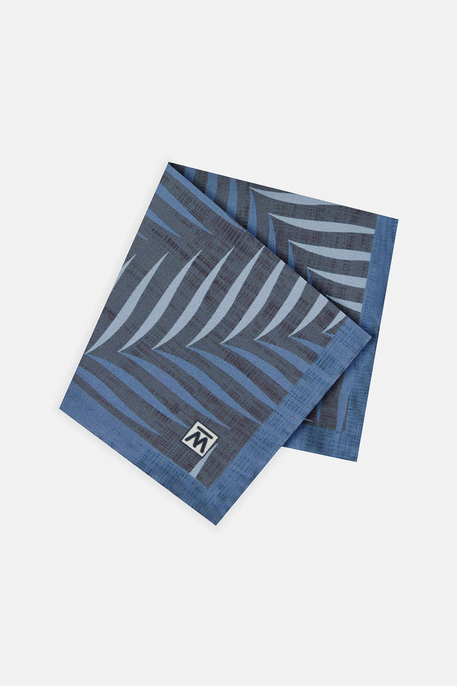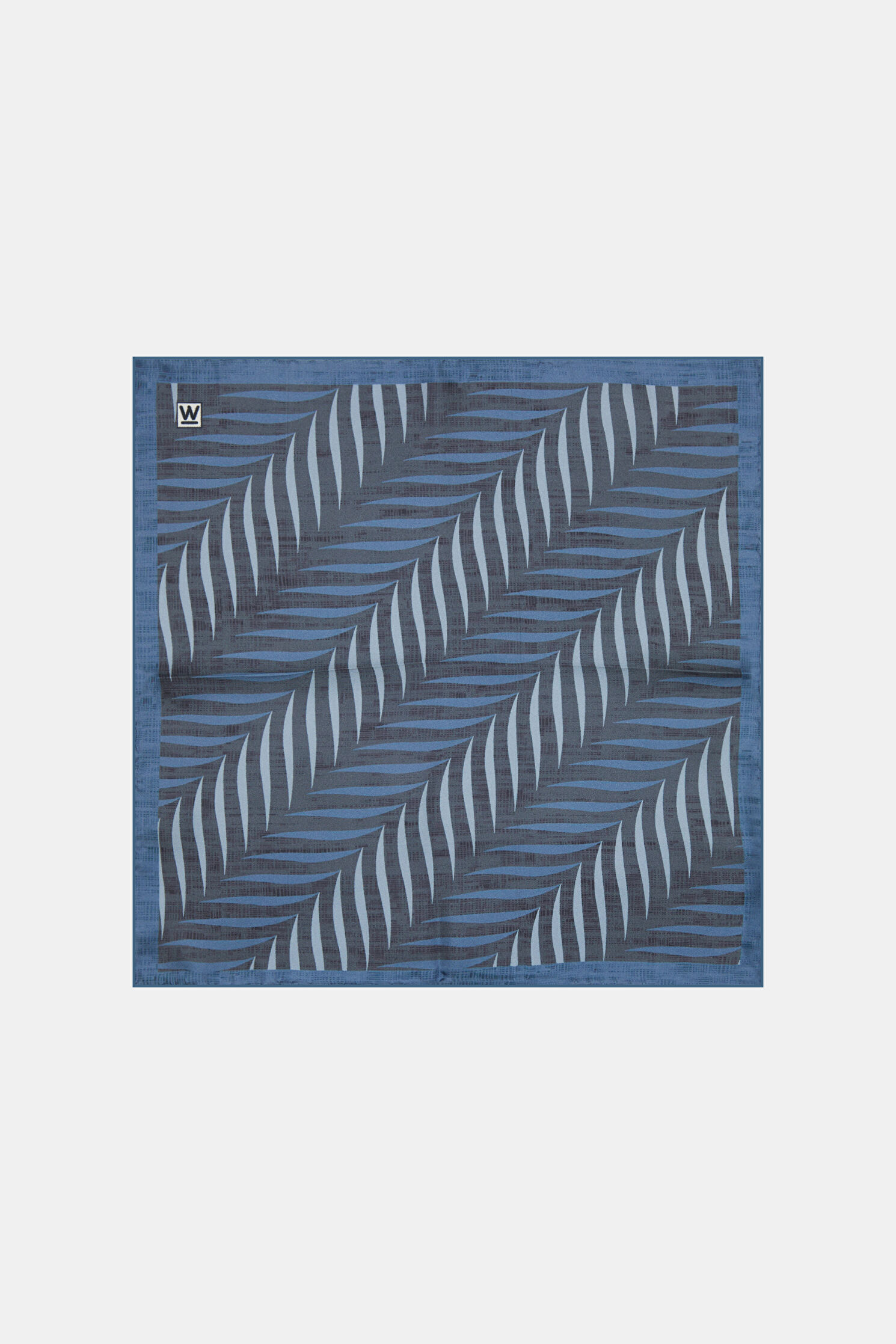 Mavi, lacivert renk desenleri ile öne çıkan W Collection mendil, ipek kumaştan üretilmiştir.