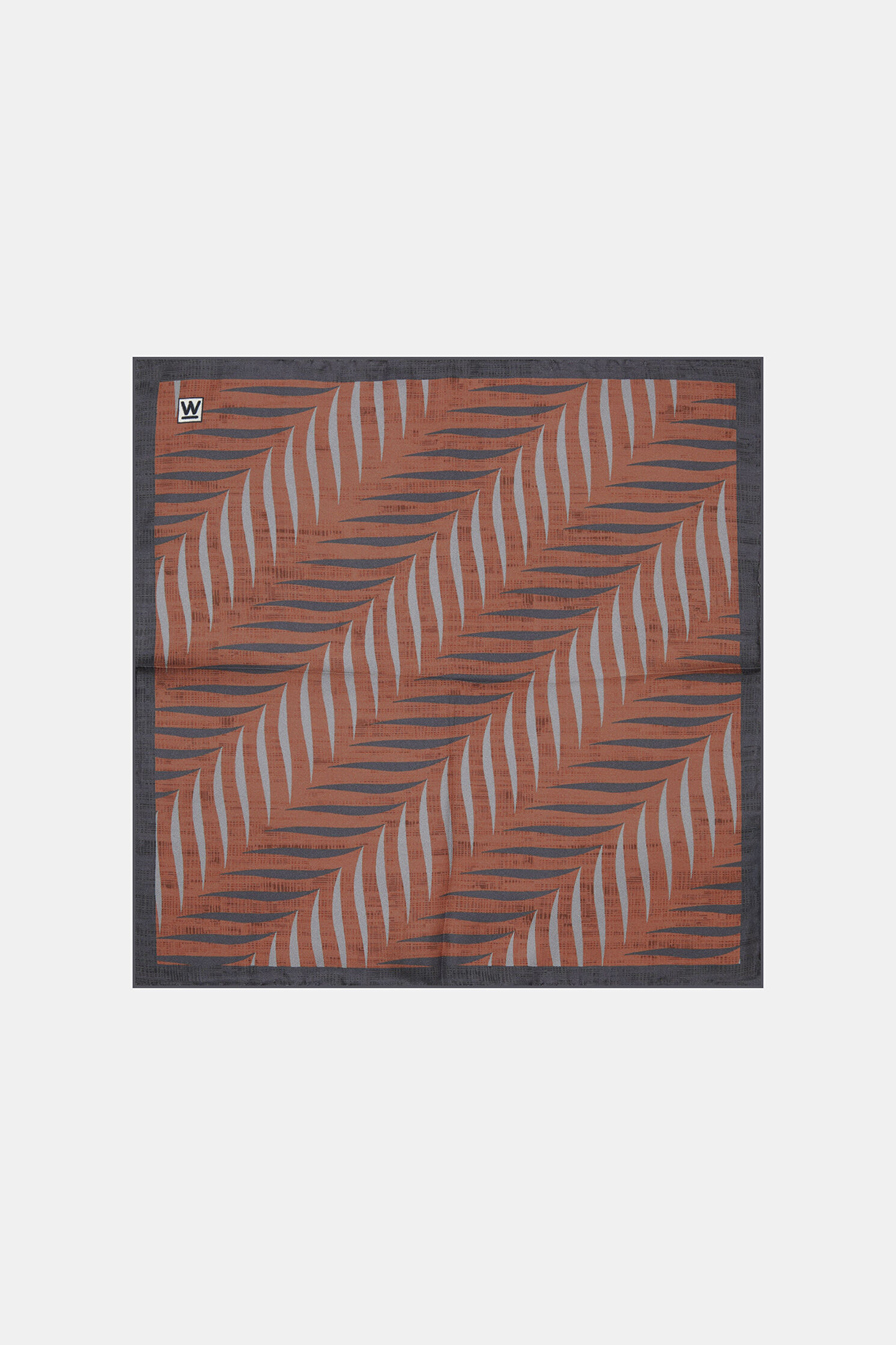 Bakır, gri renk desenleri ile öne çıkan W Collection mendil, ipek kumaştan üretilmiştir.