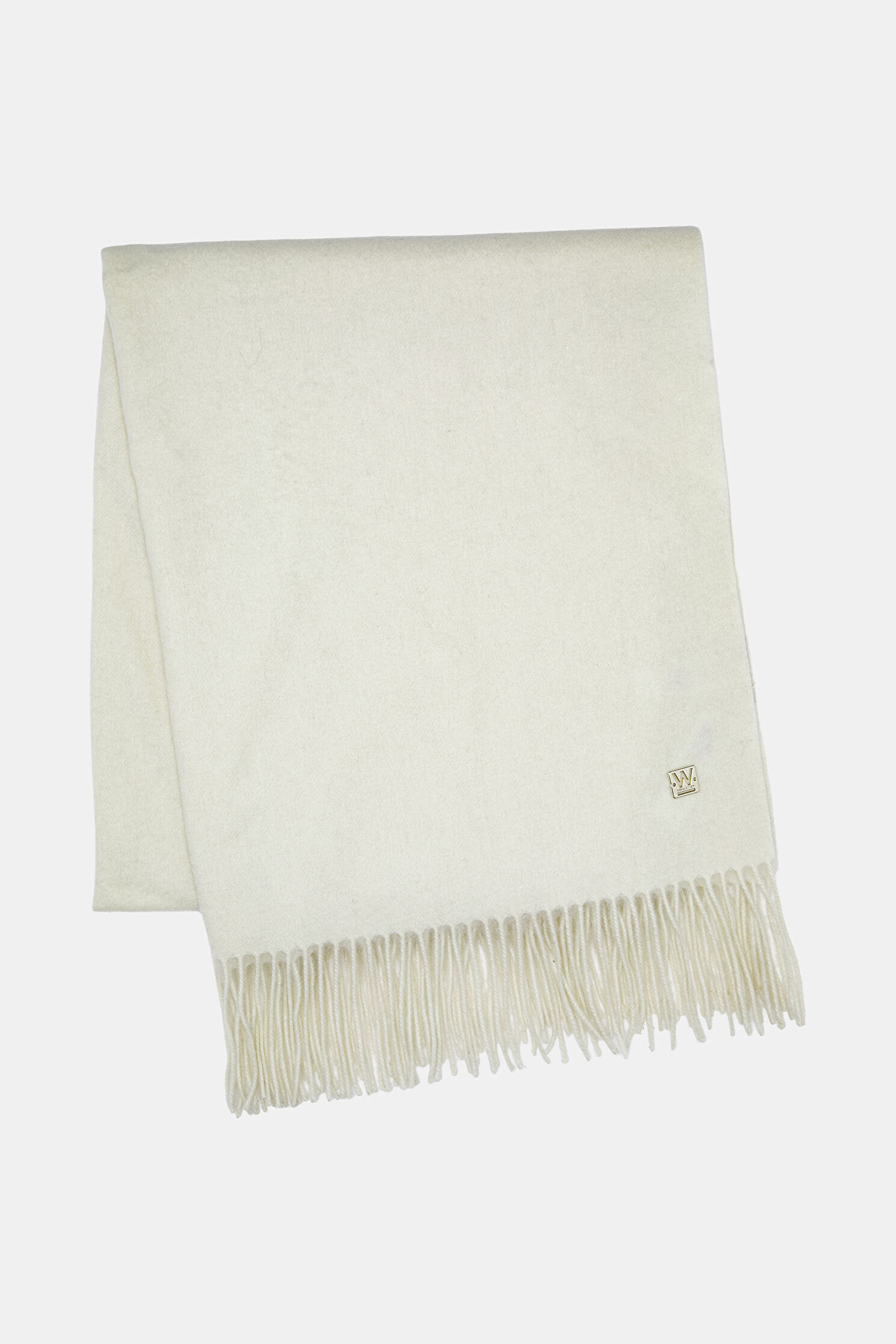 Koyun yünü, kaşmir kumaştan üretilen ekru renkli W Collection atkı, püskül detayları ile dikkat çekiyor. Bu tasarım, 70 cm x 180 cm ölçüye sahiptir.