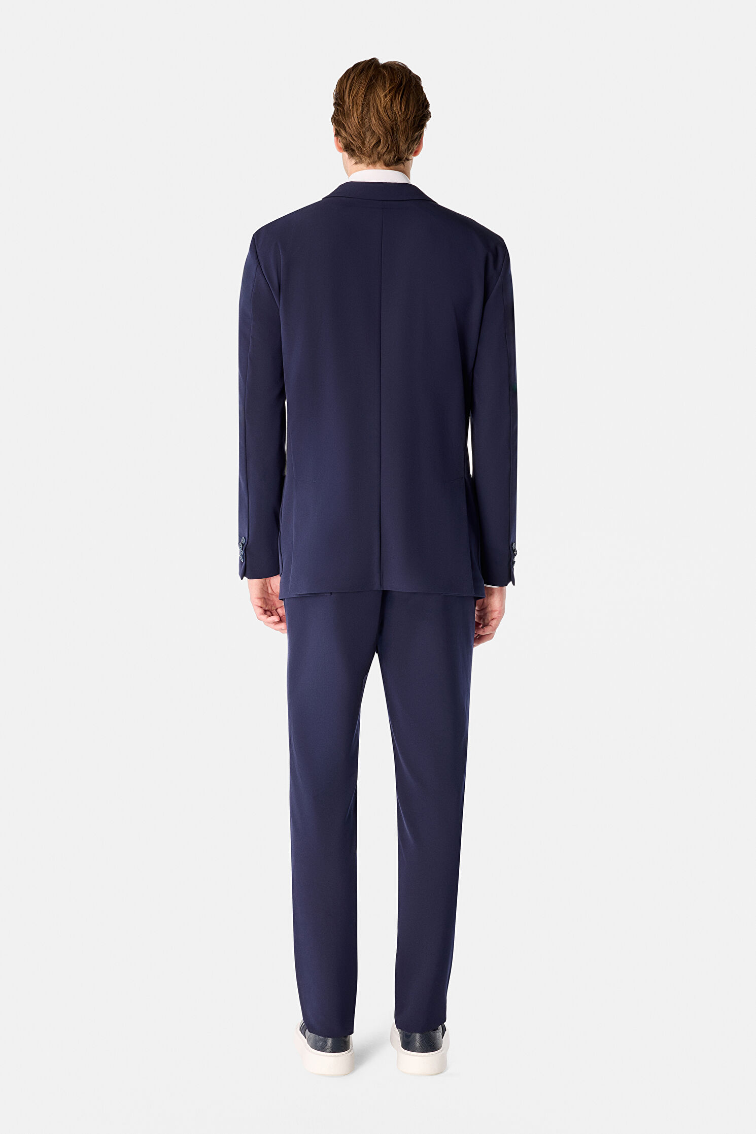 Yün kumaştan üretilen lacivert renkli W Collection takım elbise; göğüs cebine, etek ceplerine ve çift düğme kapama detayına sahip olan ceketi ve cep detaylı pantolonu ile öne çıkıyor.