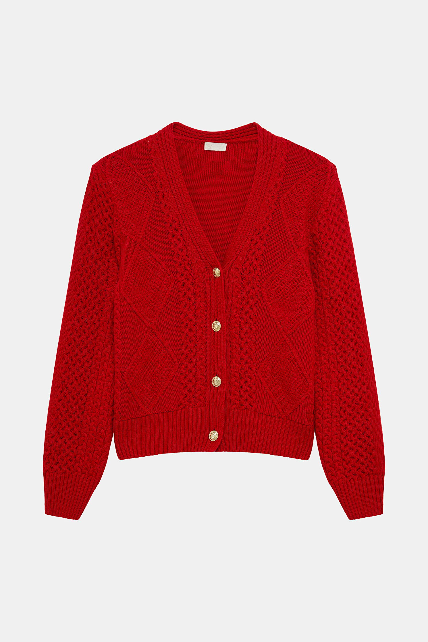 KIRMIZI ÖRGÜ DESENLİ HIRKA
