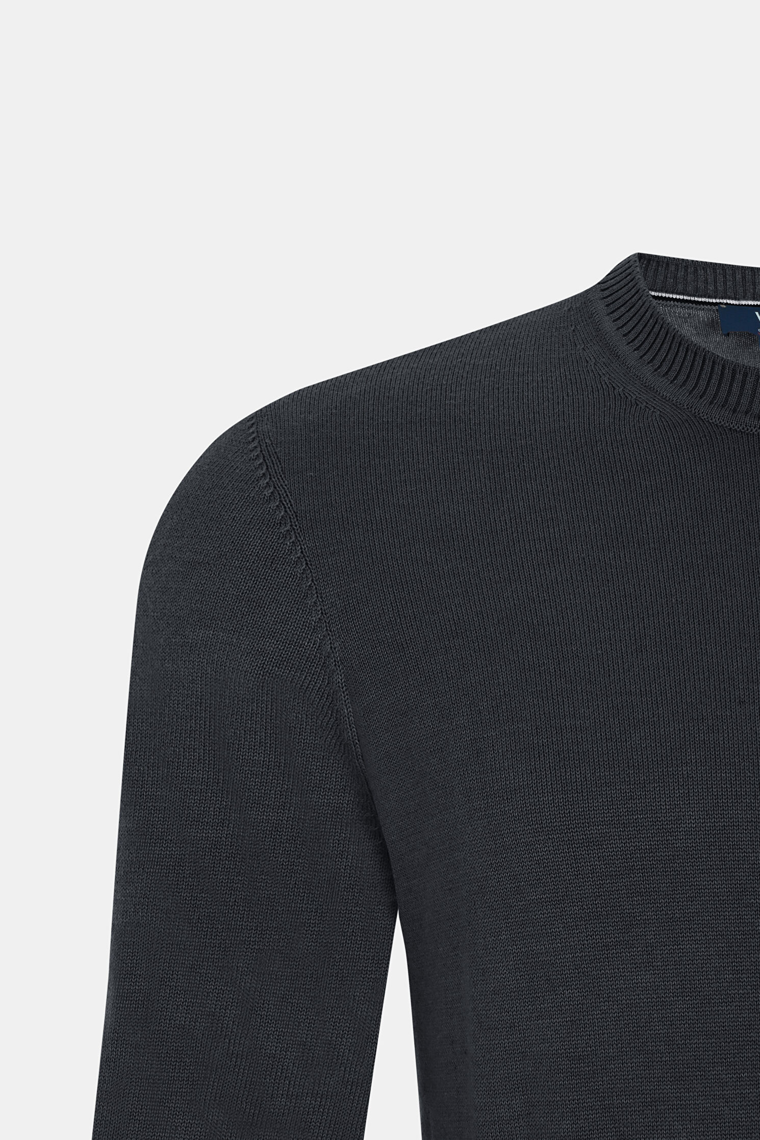 Manşetlerinde, bisiklet yakasında ve etek ucunda nervür detaylarına yer veren W Collection uzun kollu kazak, koyu gri rengi ve pamuk karışımlı kumaşı ile öne çıkıyor.